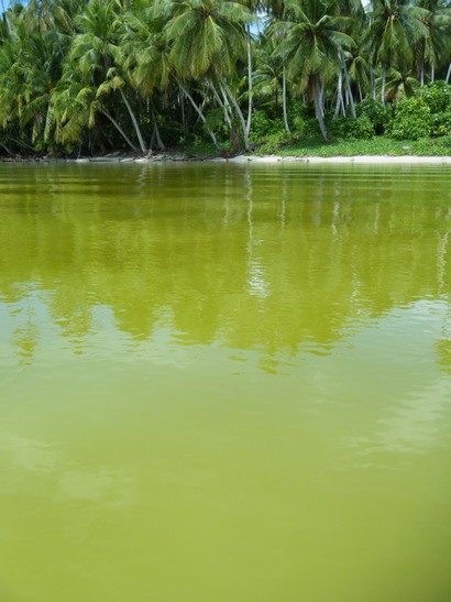 It's hard to say if these are natural events, or if they result from our activities. Twice in 2012 we had these 'green tides' in our lagoon.
