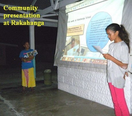 Munokoa &Tokoteru presenting a turtle article written for the NZ School Journal (Rakahanga presentation).