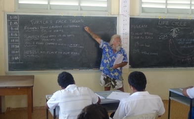 Above: Dr White teaching the Seniors at Rakahanga School.