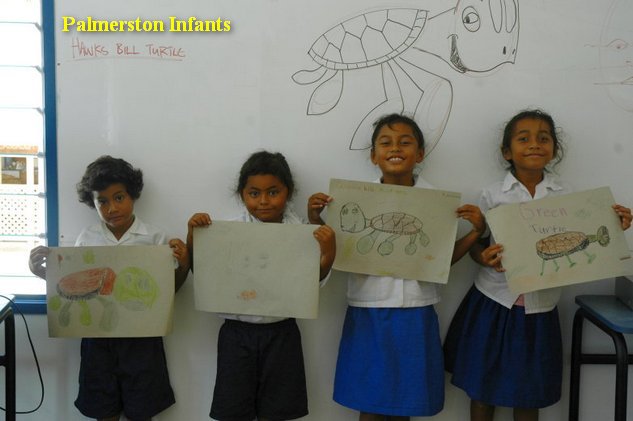 Below: Infants at Palmerston 'Lucky' School with their posters. This was