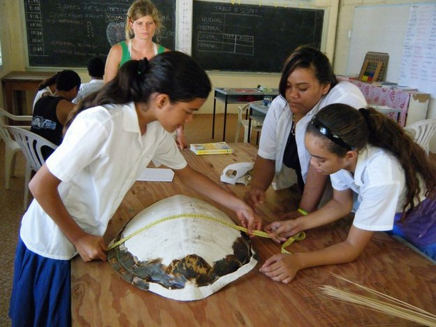 We teach biology and ecology, and why sea turtles are endangered; but we focus on the needs of each island. On some atolls everybody is keen to look after their resources; on some others - especially cash economies - the inhabitants may not think about the environment so much.